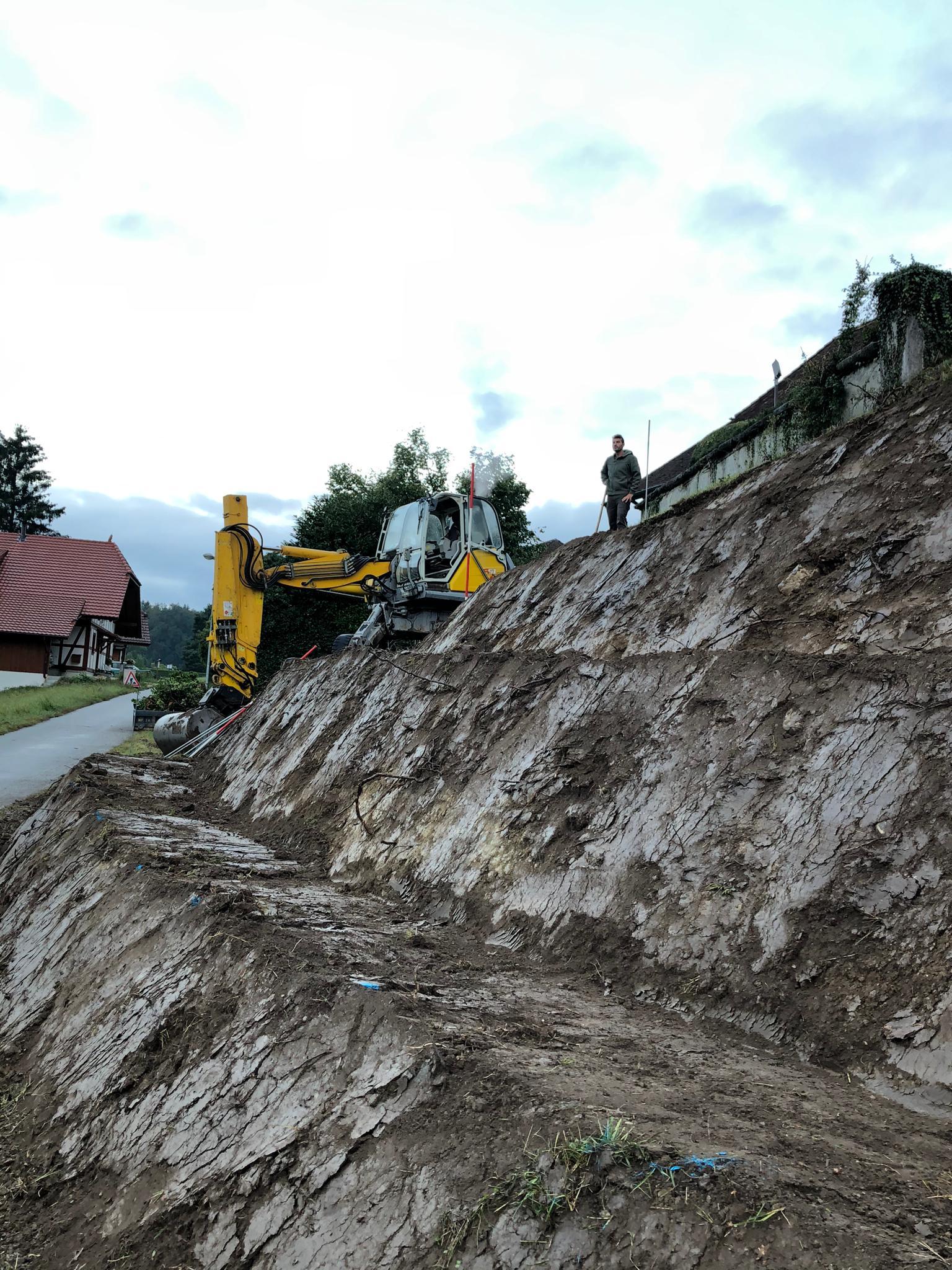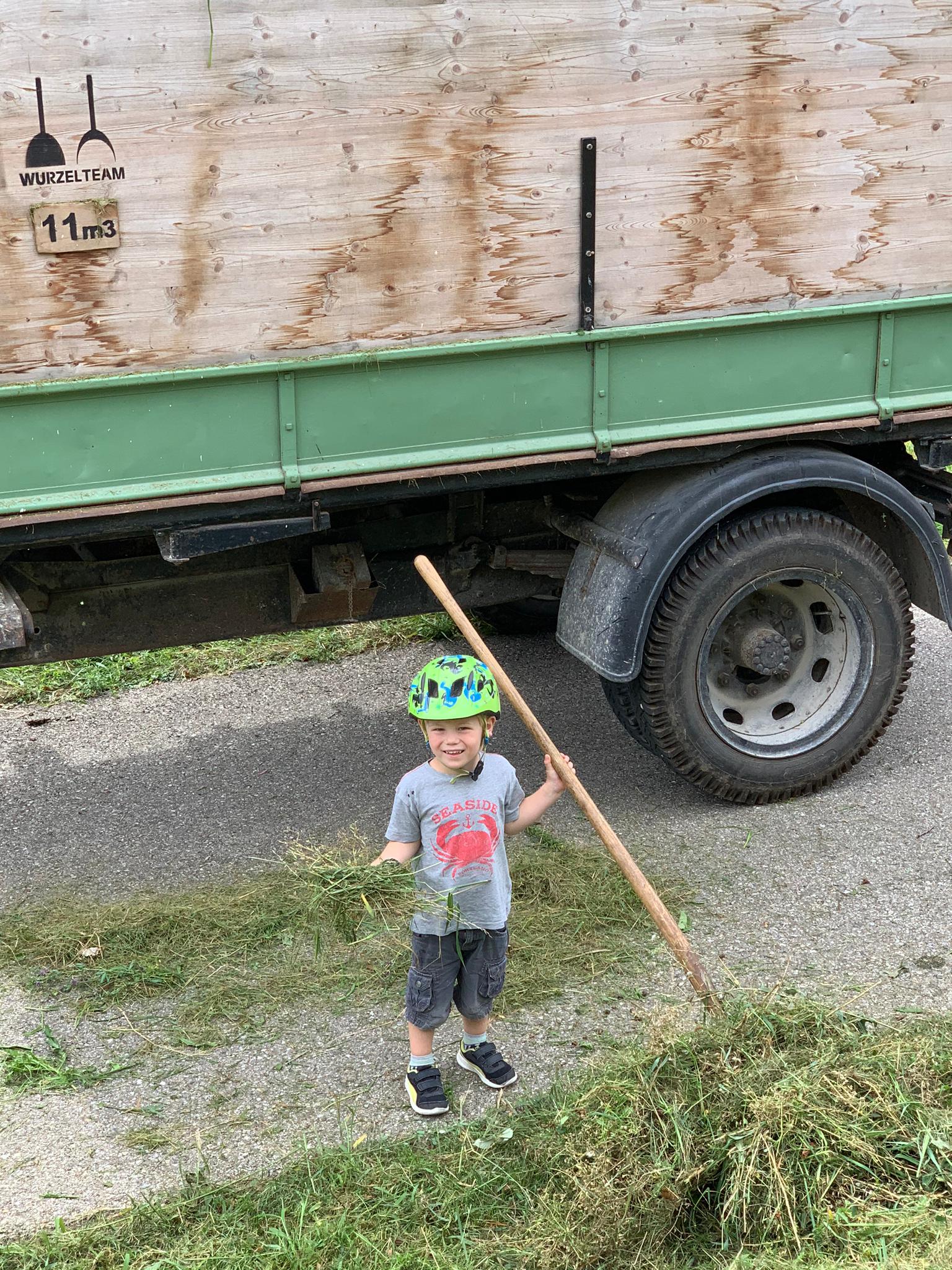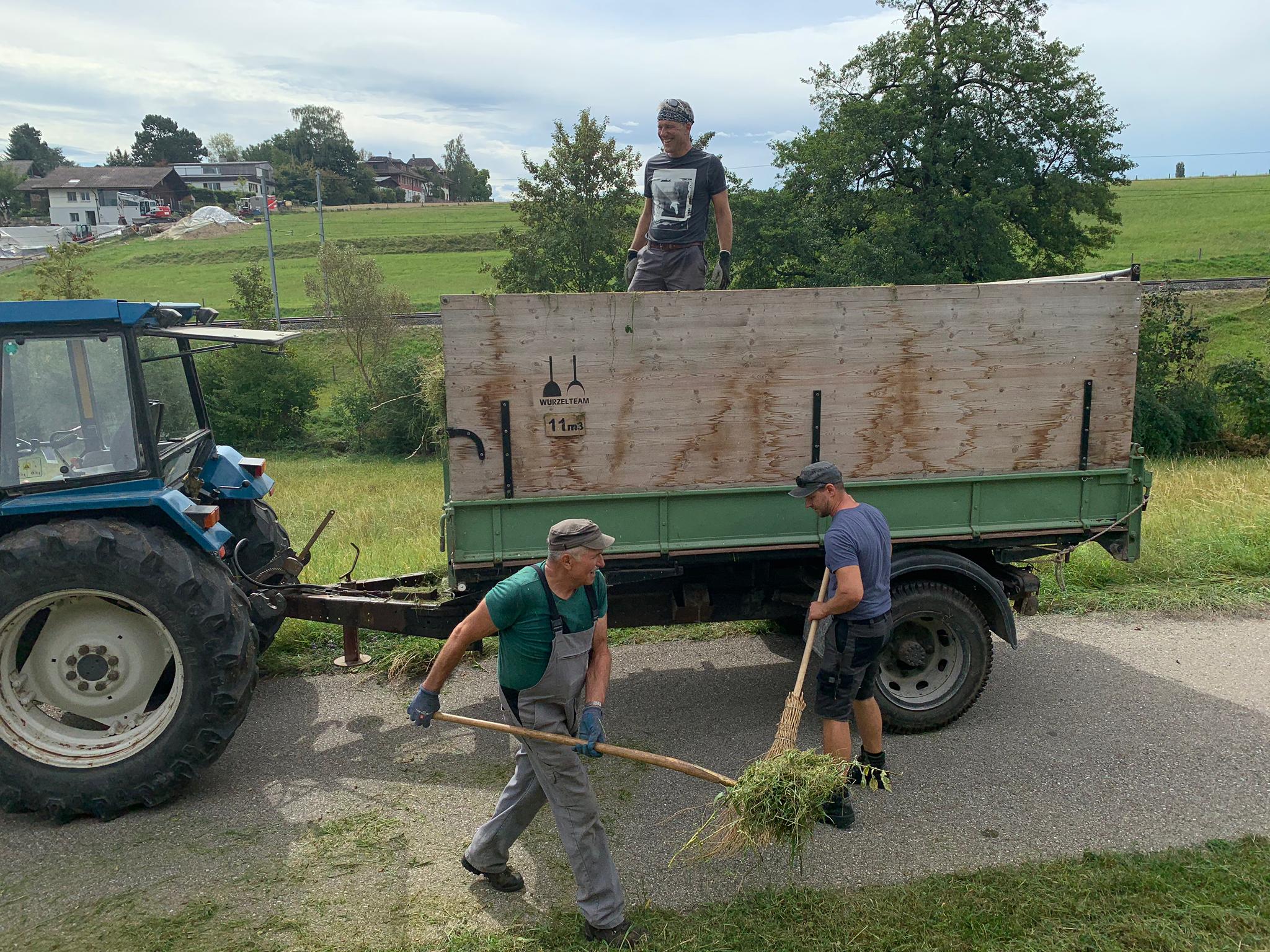 Der Hang wird vorbereitet - Grosse und Kleine Helfer im Einsatz